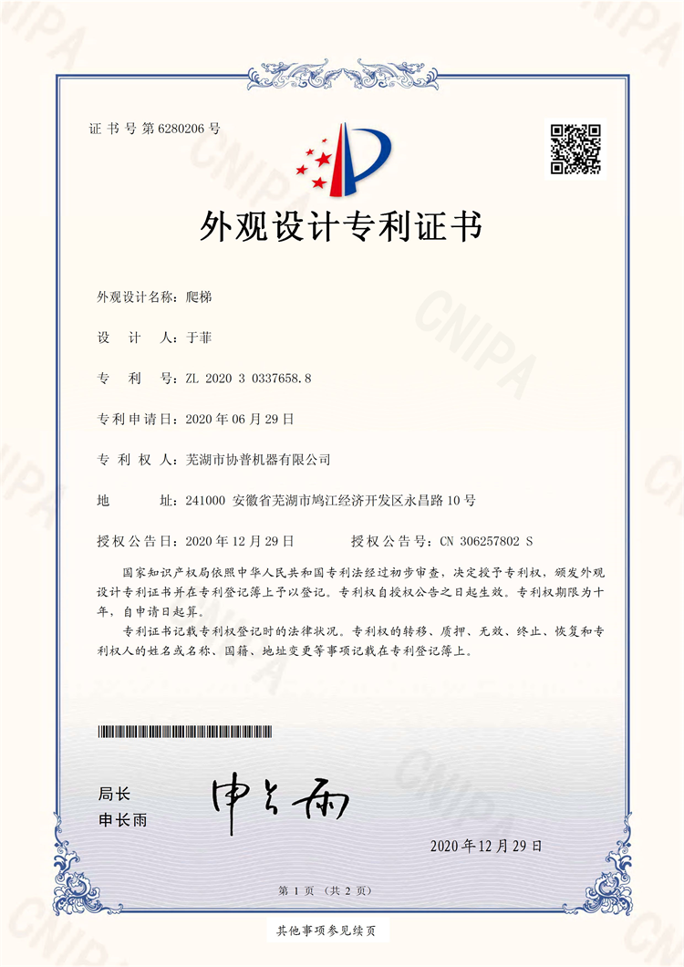外觀設(shè)計專利證書